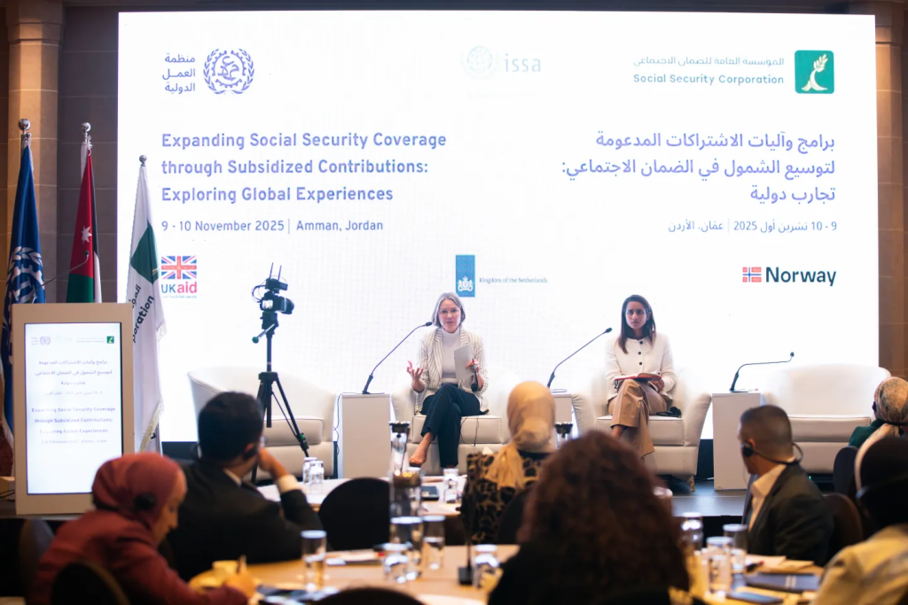 عقدت المؤسسة العامة للضمان الاجتماعي ومنظمة العمل الدولية والجمعية الدولية للضمان الاجتماعي ورشة عمل وطنية استمرت يومين في عمّان يومي 9 و10 تشرين الثاني تحت عنوان: “برامج وآليات الاشتراكات المدعومة لتوسيع الشمول في الضمان الاجتماعي: تجارب دولية مختلفة”.